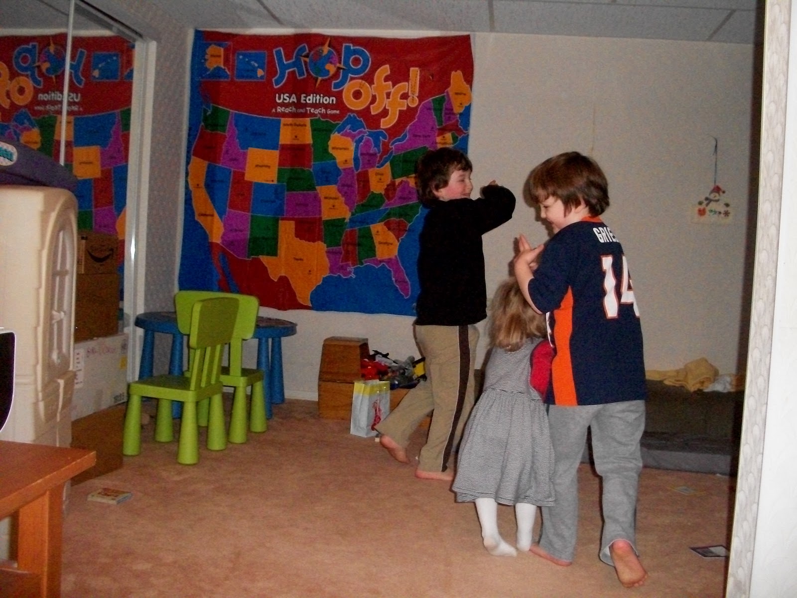 Time for PE. I am utilizing Dr Sears Lean Kids program. Part of the program emphasizes attitude and today we learned how laughter is good for the body. We spent the time telling jokes.