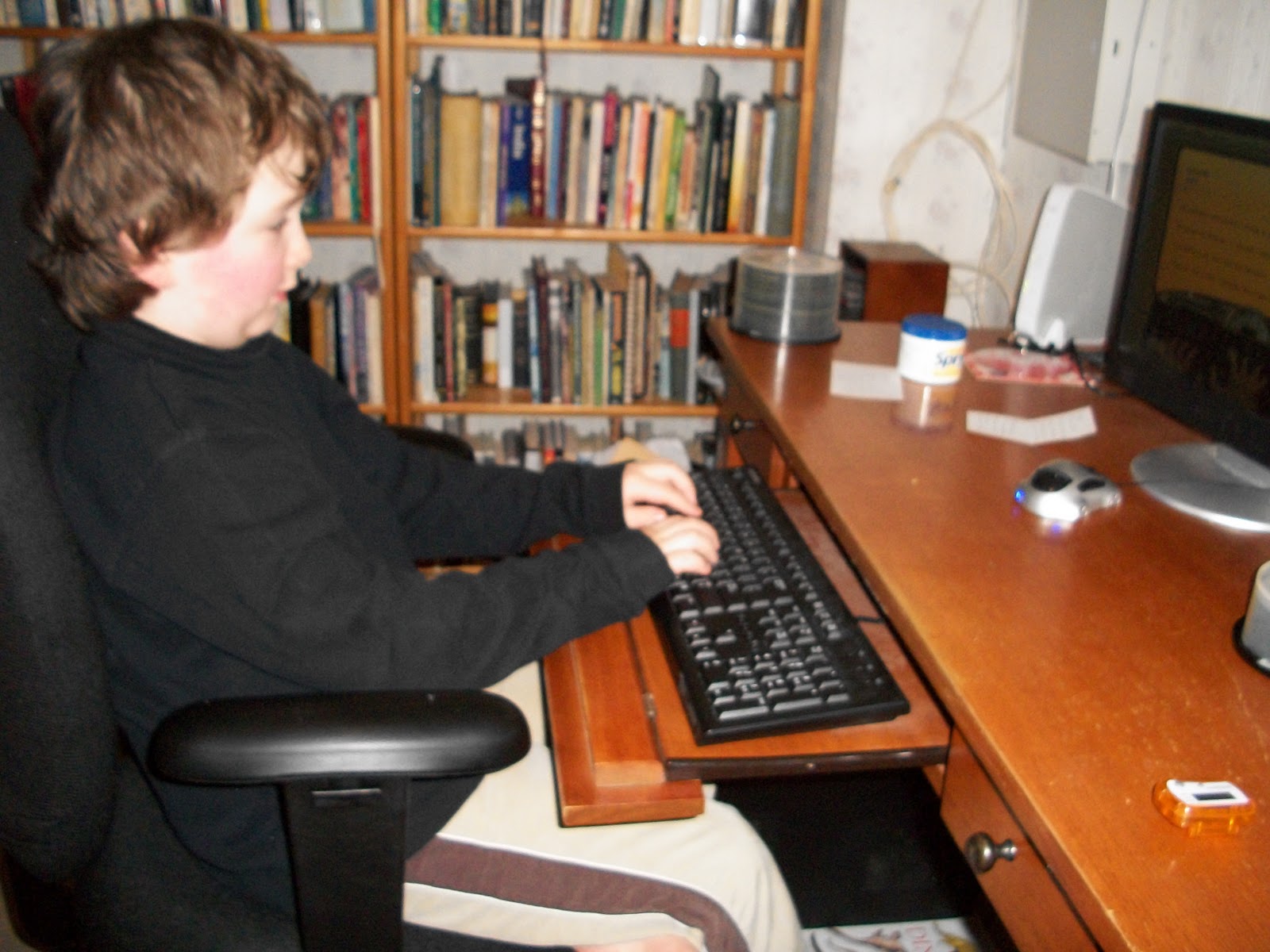 Today my camera accompanied me during our school day. I took pictures of my little ones as we did different subjects. Our school days may look a little different than the standard homeschool. We use a flexible time schedule so we don’t do x, y, and z subjects everyday. Today we did Bible, Drama, Typing, Language Arts, French, Map Reading, PE, Science, Phonics and Math and spent nearly 5 hours total on our school day.