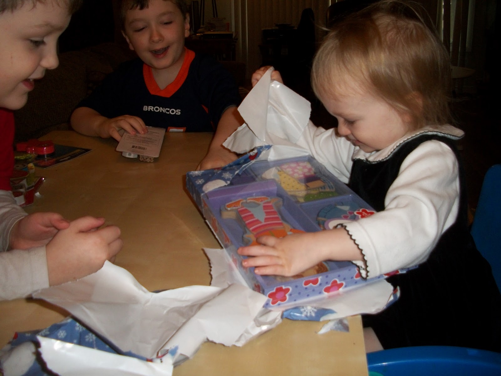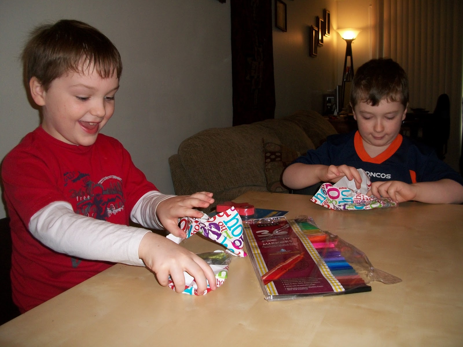 We started our school year with a little fun.  Earlier this summer I learned of a homeschooling family that wrapped all the new school supplies.  On the first day of school they opened presents.  I thought my kids would love that so we started out day unwrapping presents.  I had wrapped their new school books, some read alouds, as well as things like markers and pencils.