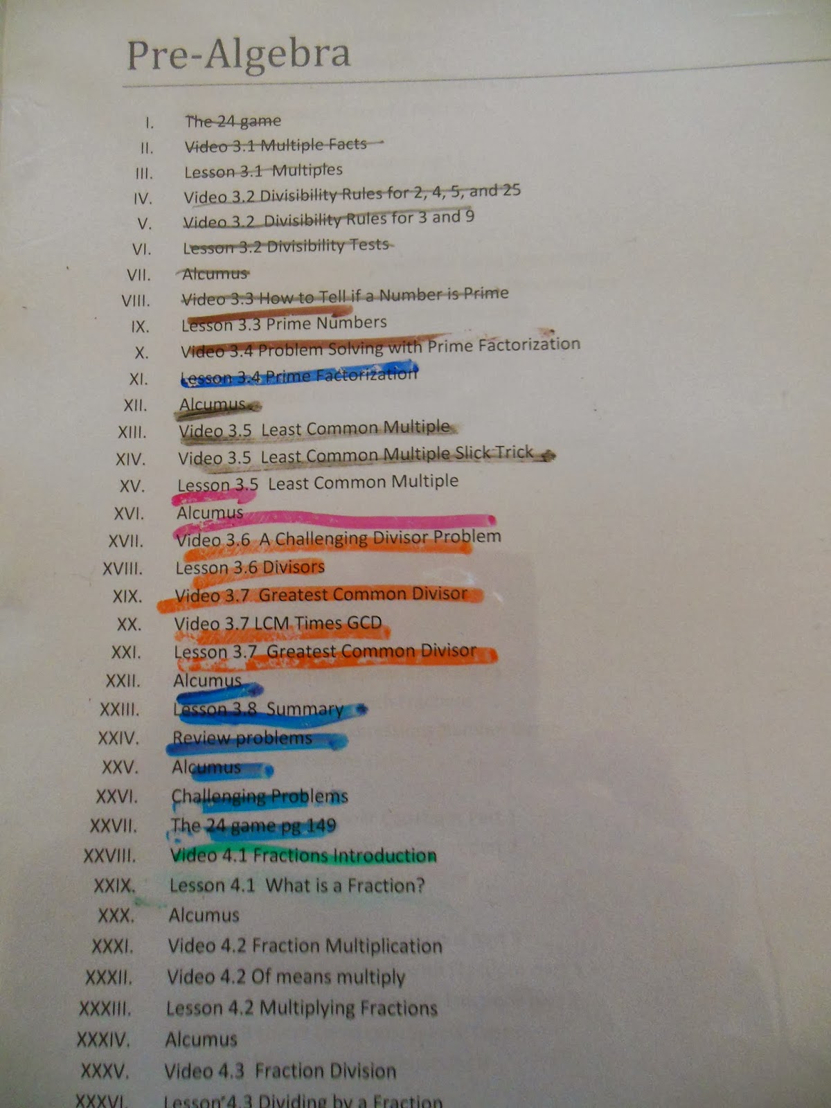 This is part of the Art of Problem Solving Pre-Algebra list. It is mostly a do the next thing kind of plan, but I’ve added in time for Alcumus and noted when there are videos to correspond with the text.